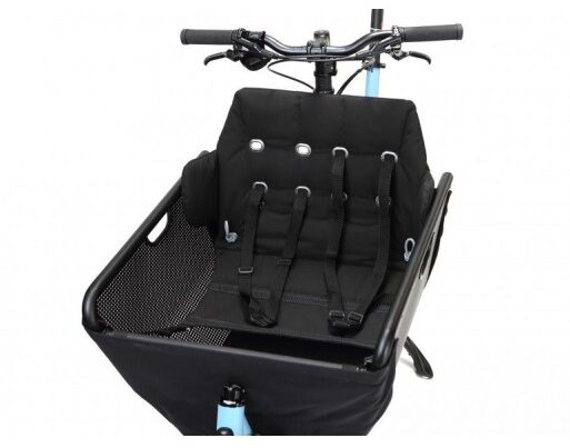 The Muli child seat is as flexible as the bike itself. Thanks to its clever suspension system, children sit comfortably and the seat can be installed facing forward or backward.